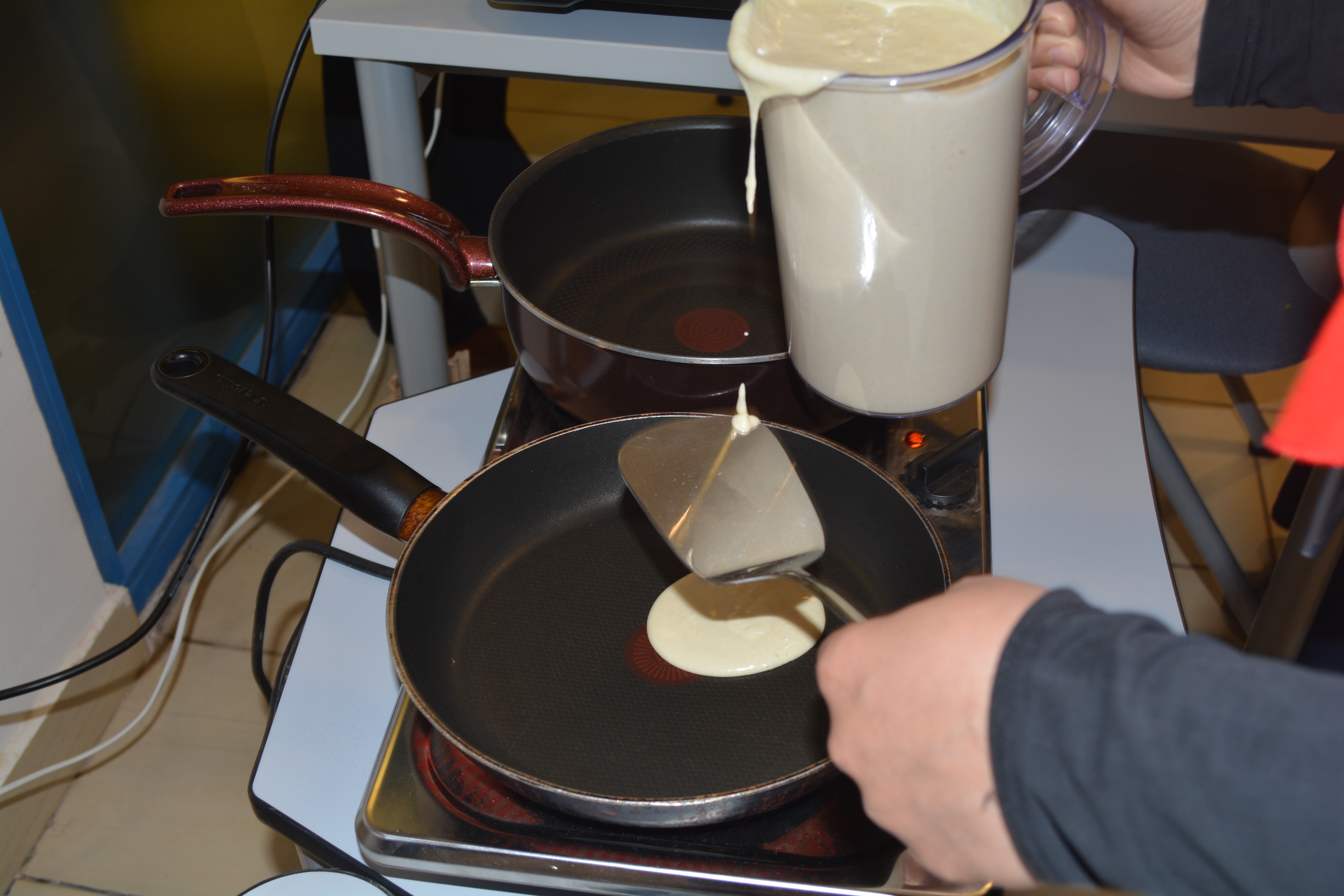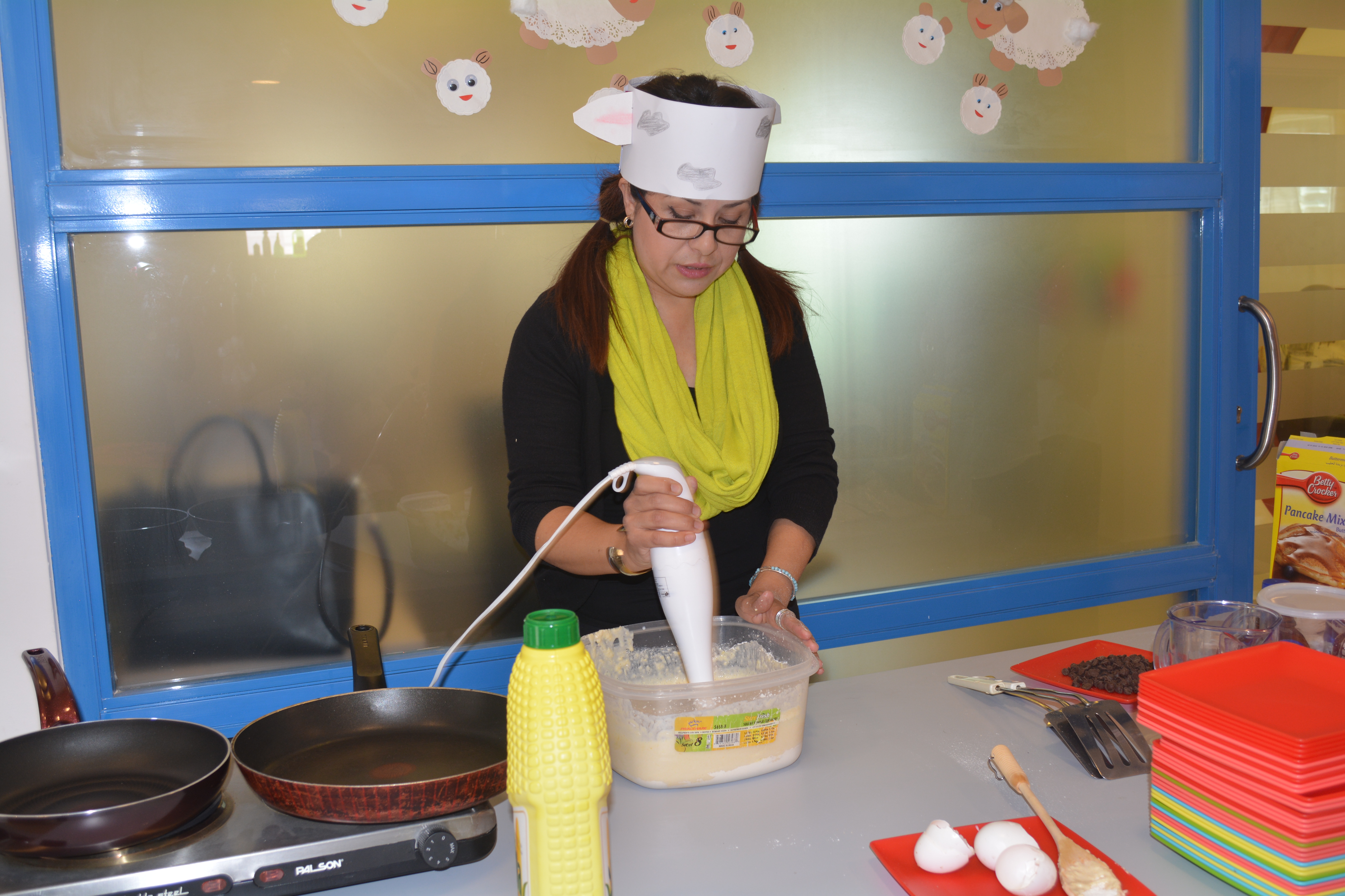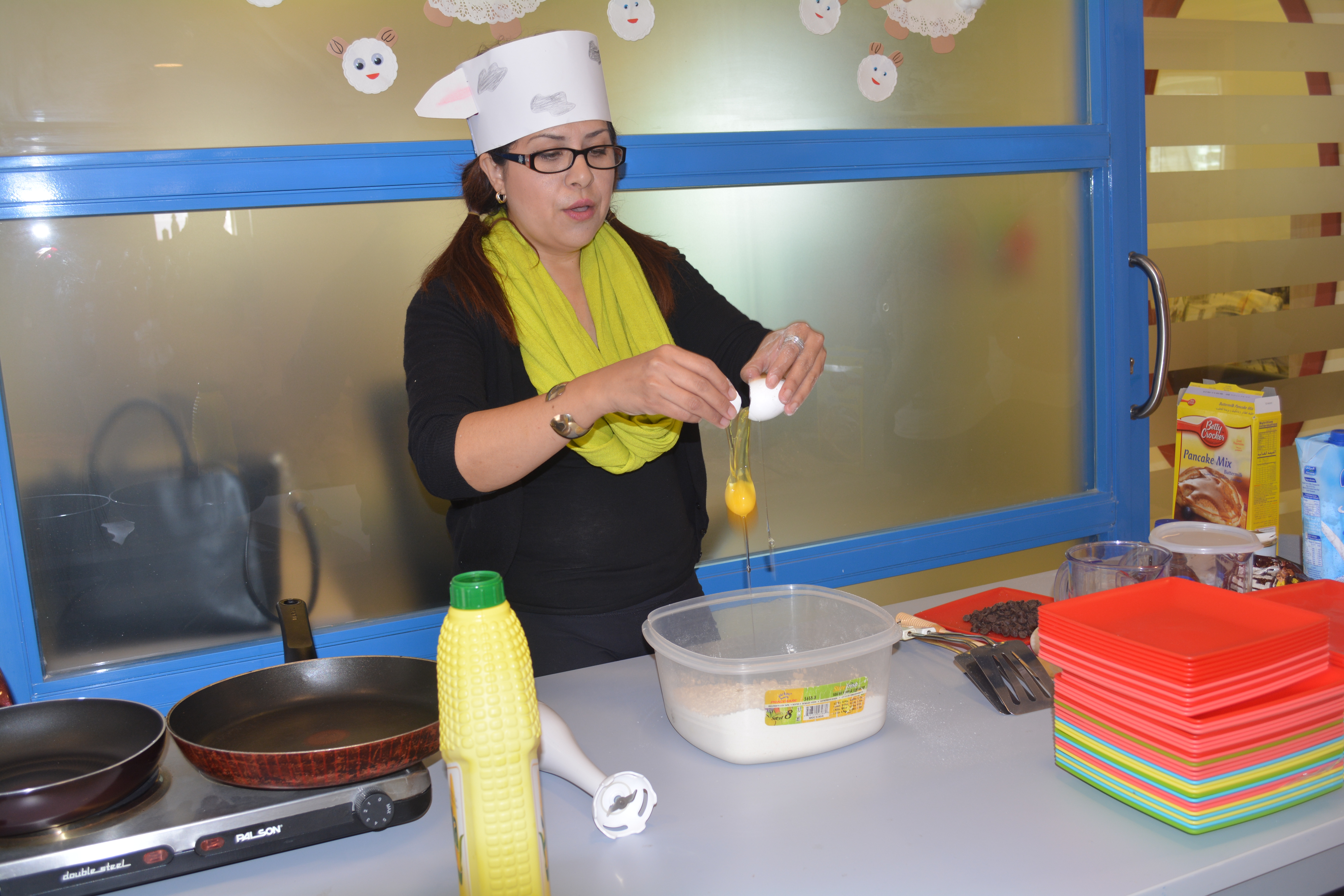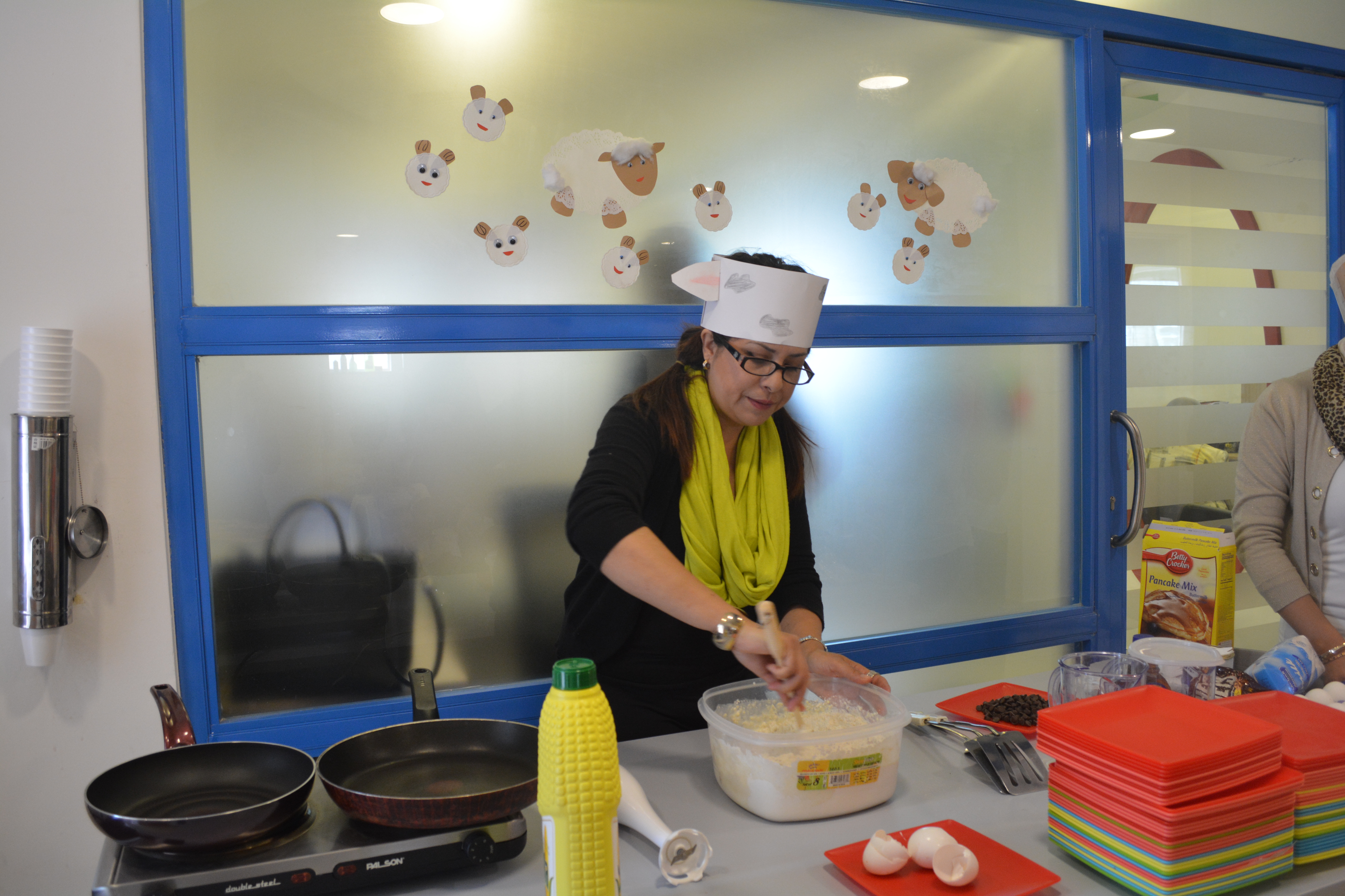 It was an amazing activity the KG children enjoyed. Before the students ate their pancakes, we discussed “The 5 senses”, as well “Living things” and they had to think about as they ate. We talked about the ingredients one by one. The children were asked: What did you see, hear, smell, feel, and taste? Where do eggs come from? Where does milk come from? We implemented Science including the themes about “Living Things” and “The five senses”. The children engaged in the whole group discussion of Science themes and how they fit into the day. This activity was the highlight of the day for the children and the school staff.